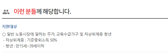 -근로를 하는 청년이면서, 차상위계층(기준중위소득 50%)에 해당하는 청년