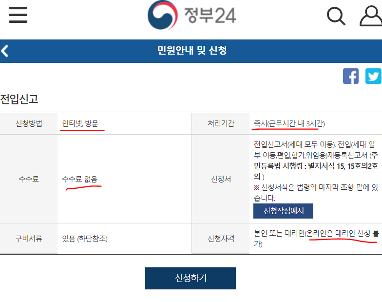 전입신고 | 민원안내 및 신청 | 민원24 | 정부24